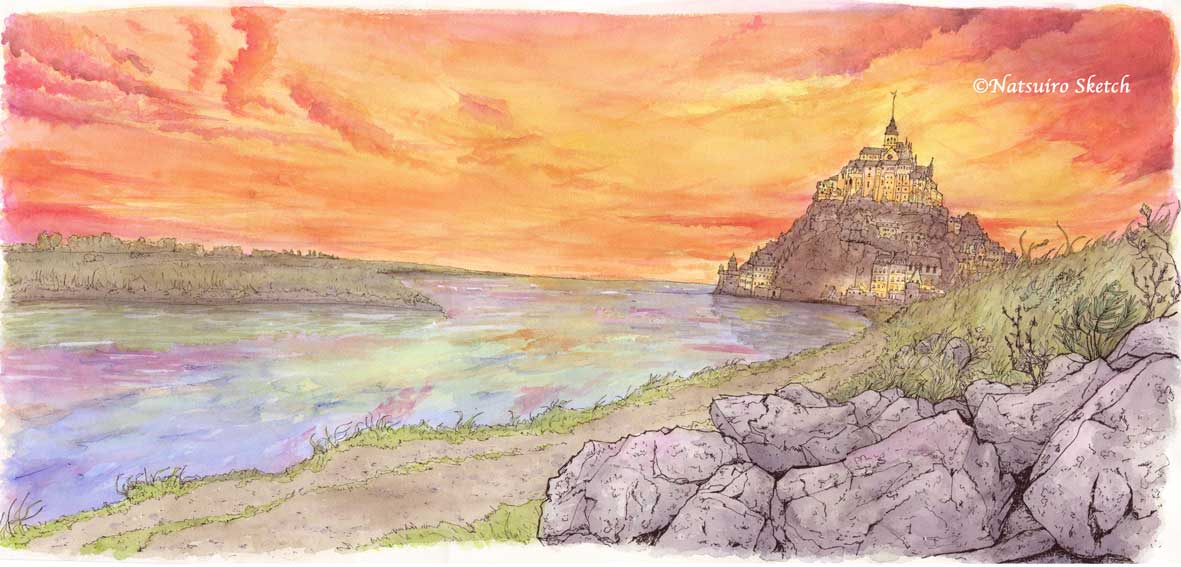 Mont Saint Michel in Red - 夕焼けのモンサンミッシェル全景 -