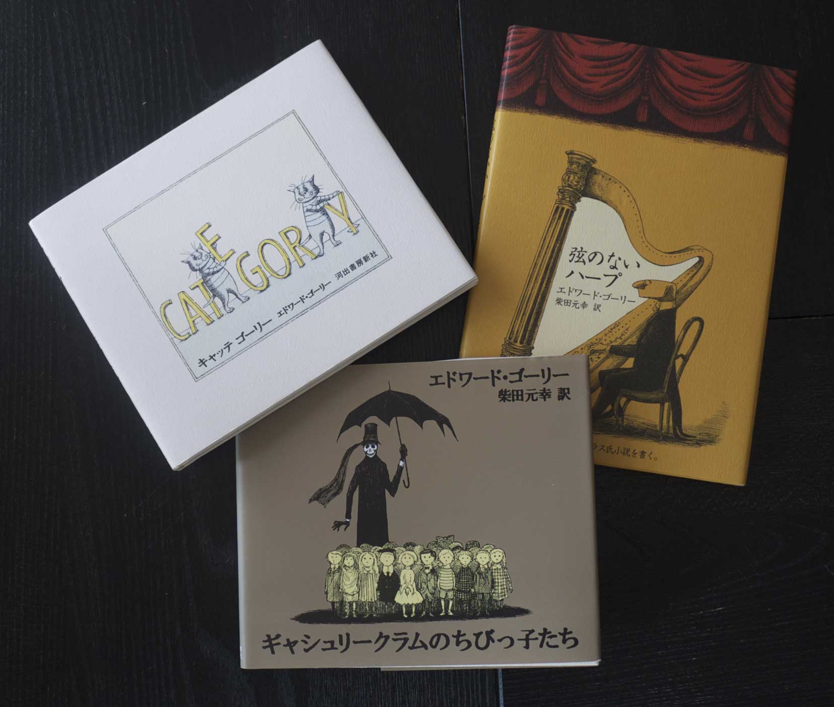 私がゴーリーを知ったのは、河出書房から出ている絵本を友人に見せてもらったのが最初。その後、確かヴィレッジバンガードで紹介されていて、自分でも数冊買いました。特に「キャッテゴーリー」