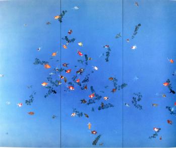 そしてもうひとつ、千駄ヶ谷の佐藤美術館で行われている「神戸智行展 イノセントワールド」。こちらも最終日に、近くに行ったついでに何となく寄ってみたのですが、とてもよかった。木、葉、石、虫、ヤモリ、金魚など、自然を描いたものが多く、和紙を効果的に使ったやさしい世界。決して強い主張のある作品ではないけれど、静かな迫力がある。こういう主張のさせ方ってとても難しい。